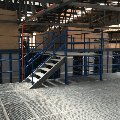 Completely bolted rigid structure supporting high floor load. It can be decked with timber, perforated steel plate, chequered plate or grating steel. The platform can be used for additional storage for house and office.